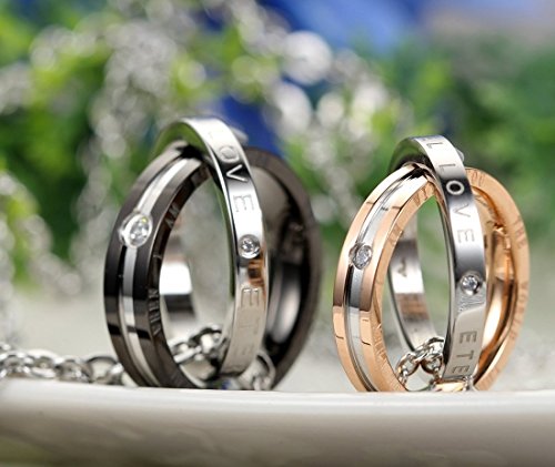 (24時間発送ができるAmazon倉庫に物流業務を委託し迅速で確実なお届けを実現しています)・ ペアネックレス・セット内容:ネックレスブラック×1、ピンクゴールド×1・サイズ:ブラック/トップ約24.8×4.9cm、チェーン長さ約60cm、太さ約3cm ピンクゴールド/トップ約23×3.9cm、チェーン長さ約55cm、太さ約2.2cm・材質:チタン鋼、水晶・重量:ブラック/14.5g ピンクゴールド/9.6g2連リング ペアネックレス セット ブラック / ピンクゴールド ステンレス 刻印 ETERNAL LOVE 記念 ステンリングには「The only eternal love(唯一の永遠の愛)」と刻印されてます。