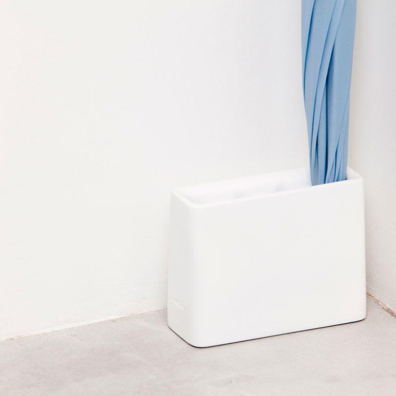 パッケージサイズ:幅200×奥行き105×高さ165mm ideaco アンブレラホルダー スリム ホワイト厚み6cmのコンパクトな傘立て。